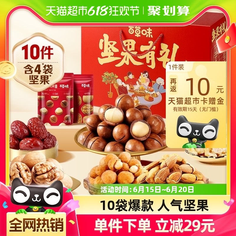 - 比比赞坚果礼盒年货礼盒送礼长辈夏威夷果拜新年过年货零食大礼包