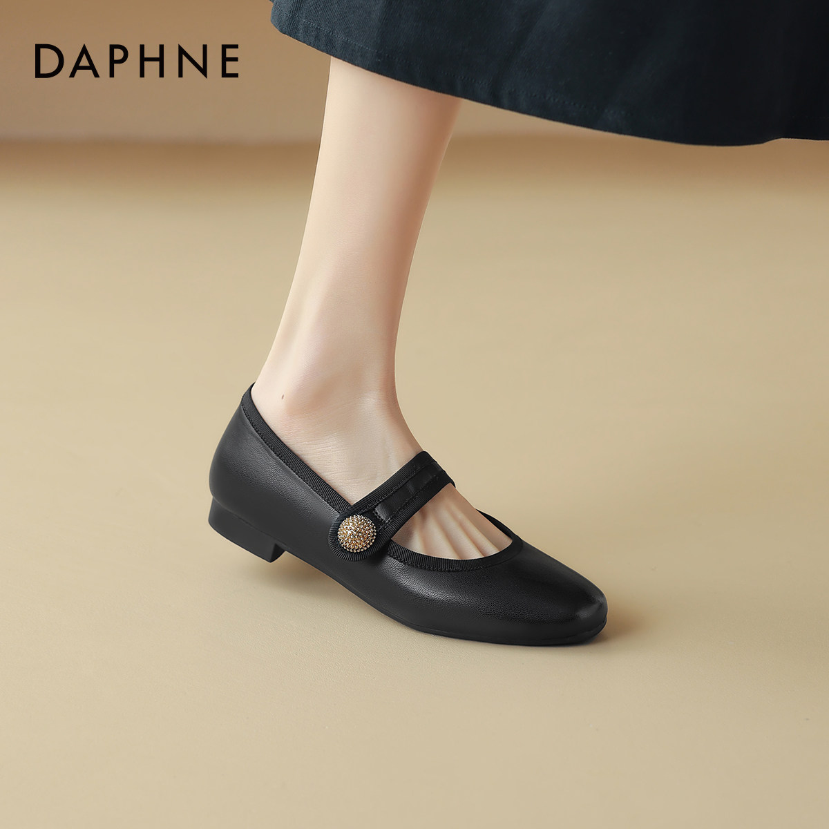 达芙妮羊皮法式单鞋女2024新款夏季软底奶奶鞋平底皮鞋玛丽珍女鞋