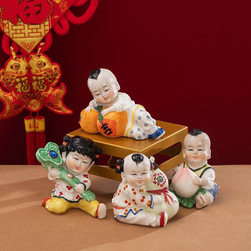 男女童子陶瓷人物家居装饰摆件早生贵子婚庆礼品车载迷你可爱手工