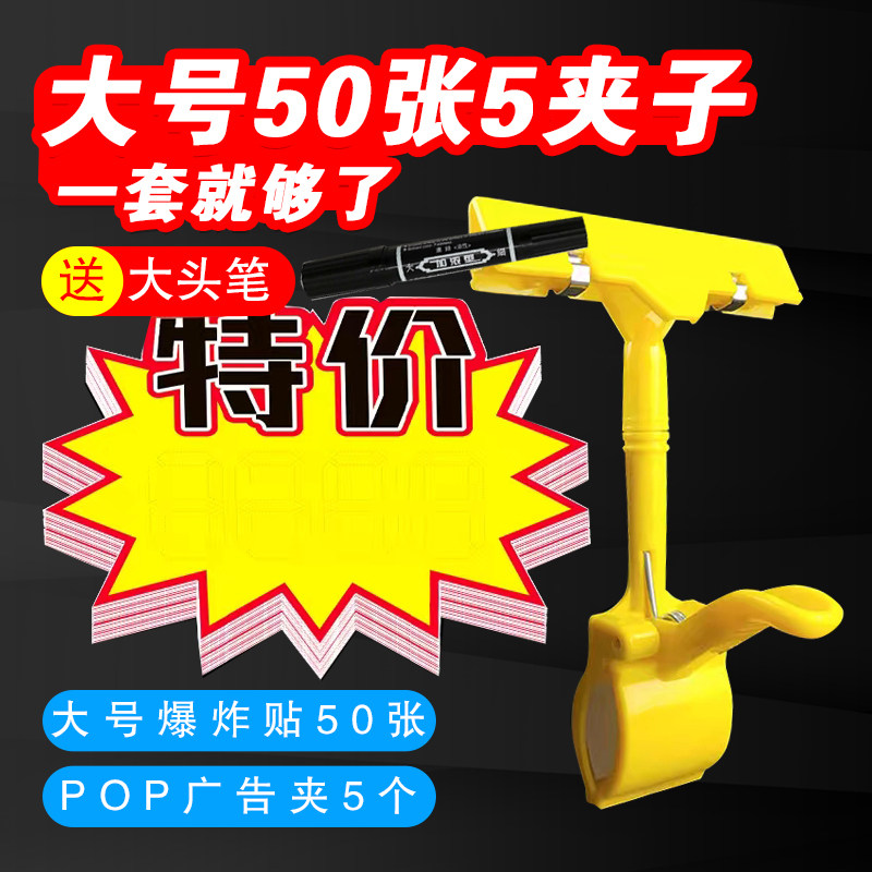 首页 > 未分类 > 大号爆炸贴POP广告纸广告夹子空白手写标价签爆炸贴夹超市特价促销商品标签纸标价牌价格签双头夹子黄色标签
