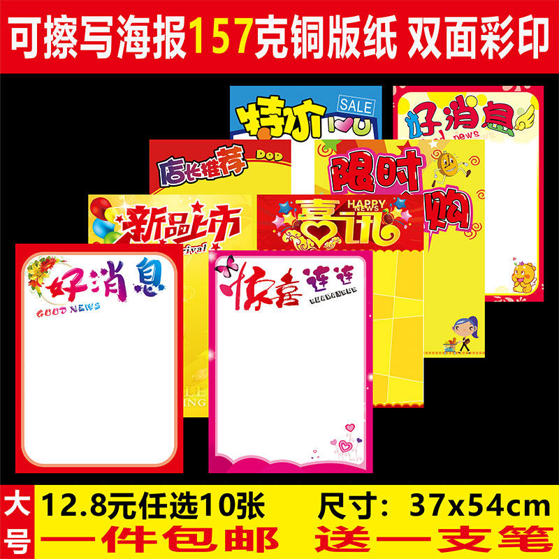 首页 > 未分类 > 包邮 大号可擦写海报纸 10张重复使用空白POP海报纸超市促销海报纸双面POP广告纸促销海报纸吊旗定制串旗广告