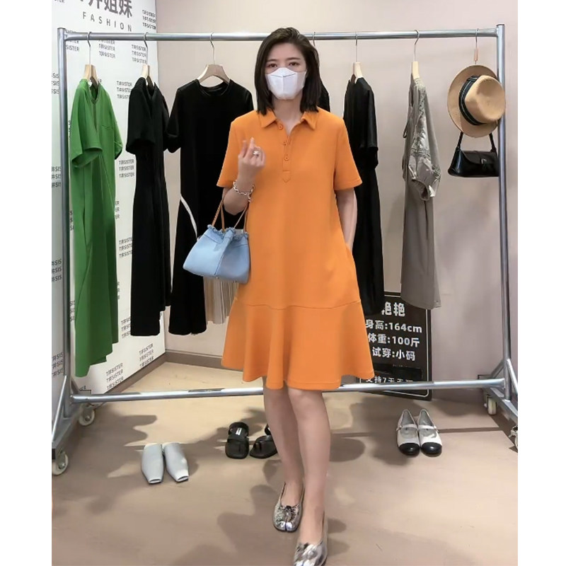 T井姐妹【橙风破浪】休闲简约通勤风polo领宽松显瘦连衣裙夏季女
