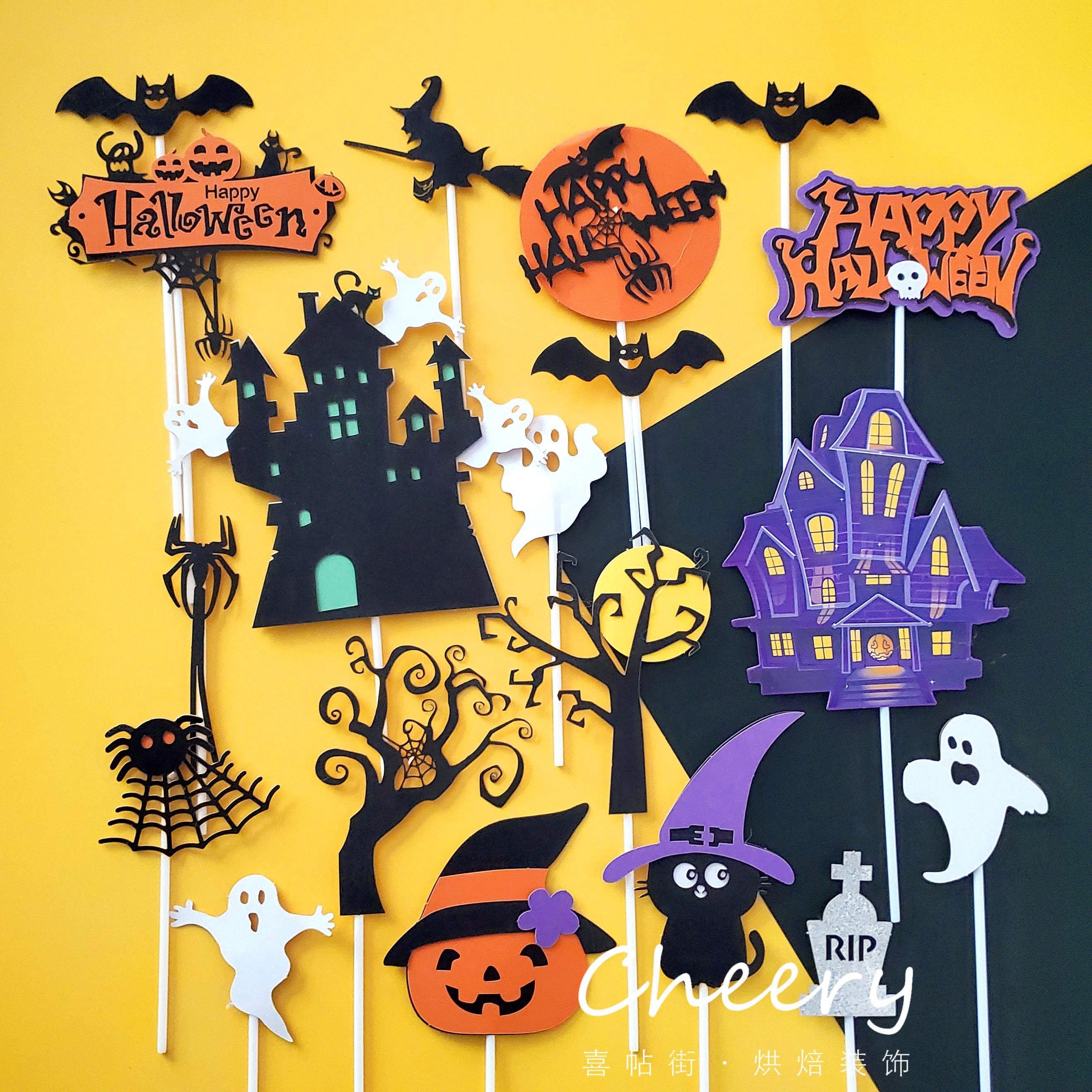 万圣节万圣夜主题南瓜蜘蛛网纸杯子小蛋糕烘焙装饰插牌插件配件