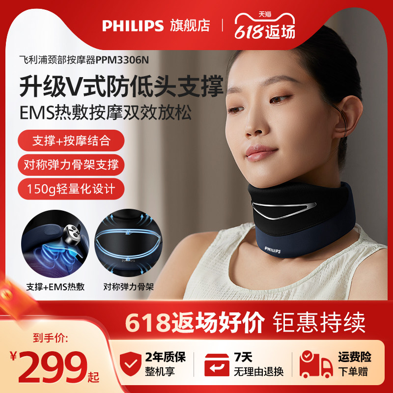飞利浦颈椎按摩器颈部按摩仪热敷脉冲护颈承托防低头毕业礼物送礼