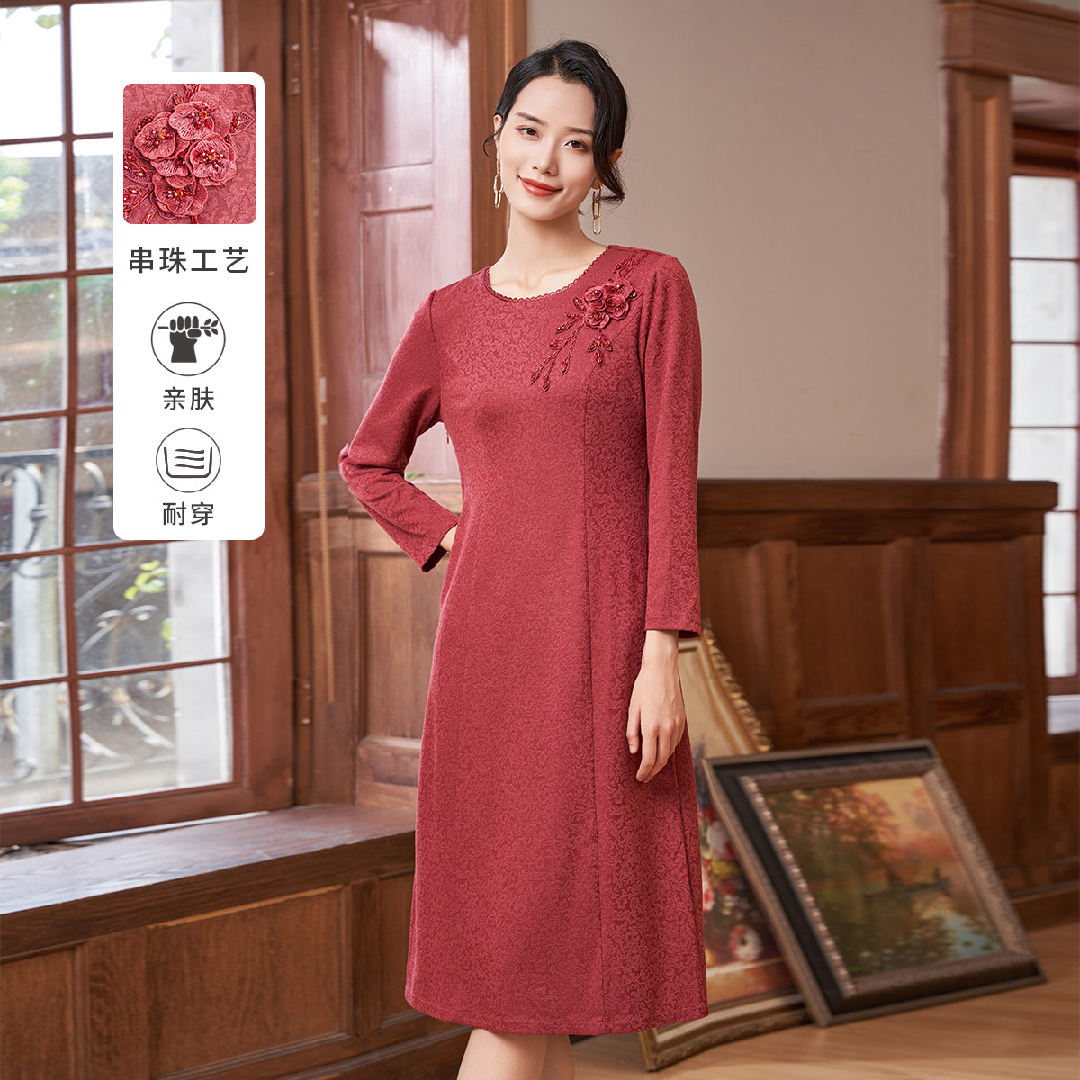 首页 > 未分类 > 马天奴春秋新款橘红色提花绣花连衣裙婚宴长裙喜婆婆礼裙子气质