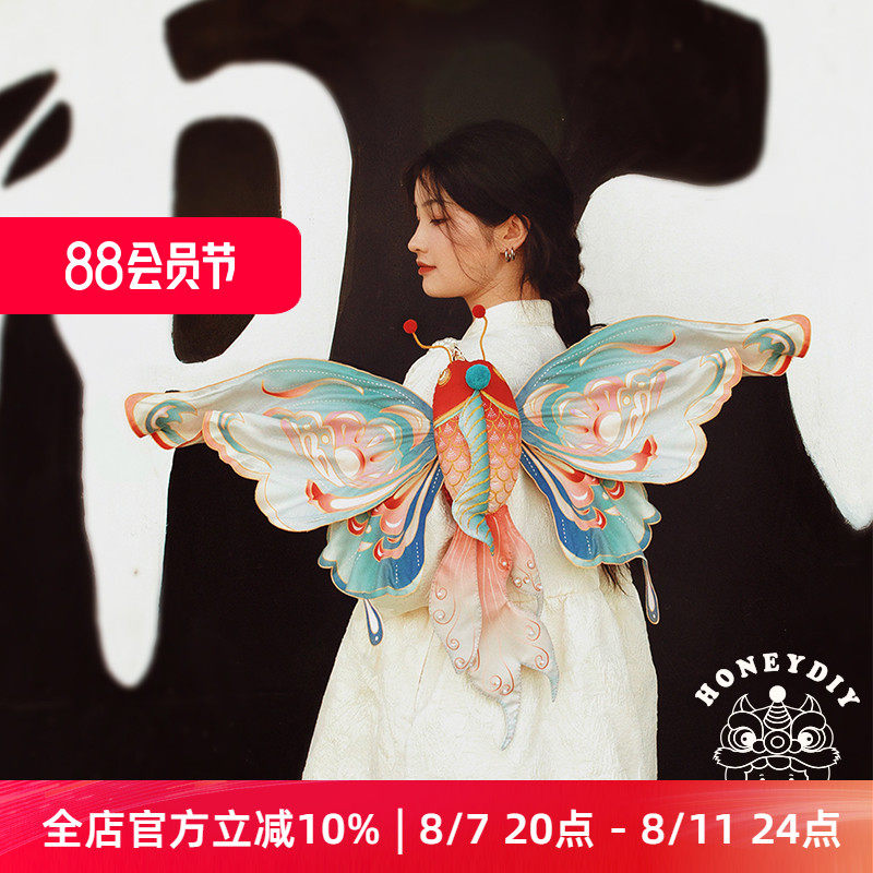 哈尼手工原创刺绣国潮风复古庄周鱼蝶包双肩背包挂饰节日礼物材料