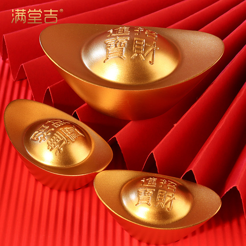 大小号黄铜沙金元宝摆件实心招财进宝道具客厅聚宝盆装饰开业礼品