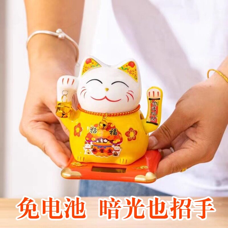 招财猫车载摆件太阳能自动招手开业桌面店铺客厅日式小号陶瓷礼品