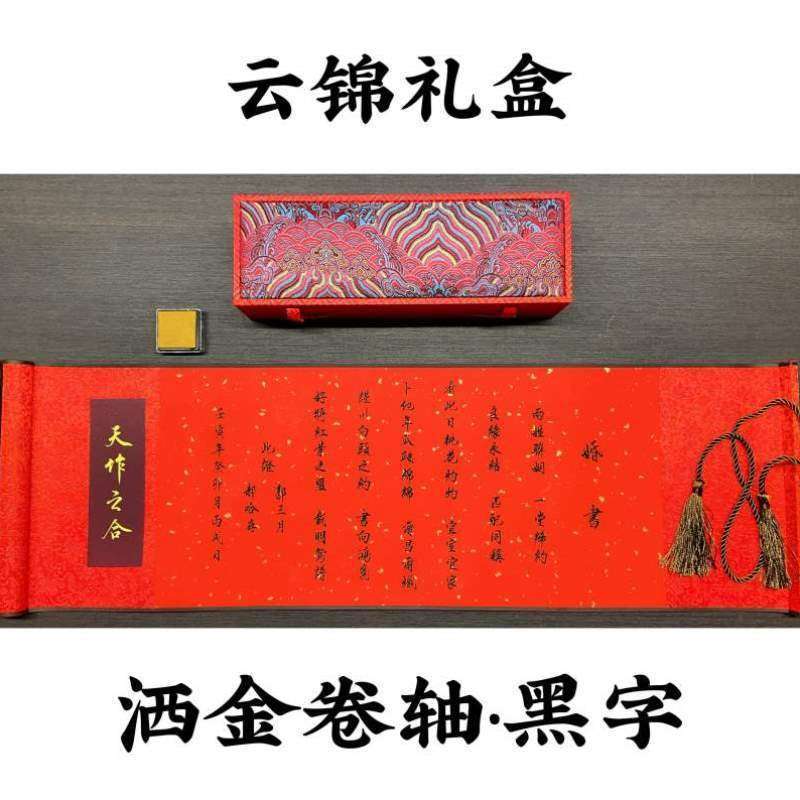 日子/卷轴书民国中式/聘书结婚手写用品/送/婚书婚书订婚/庚帖书