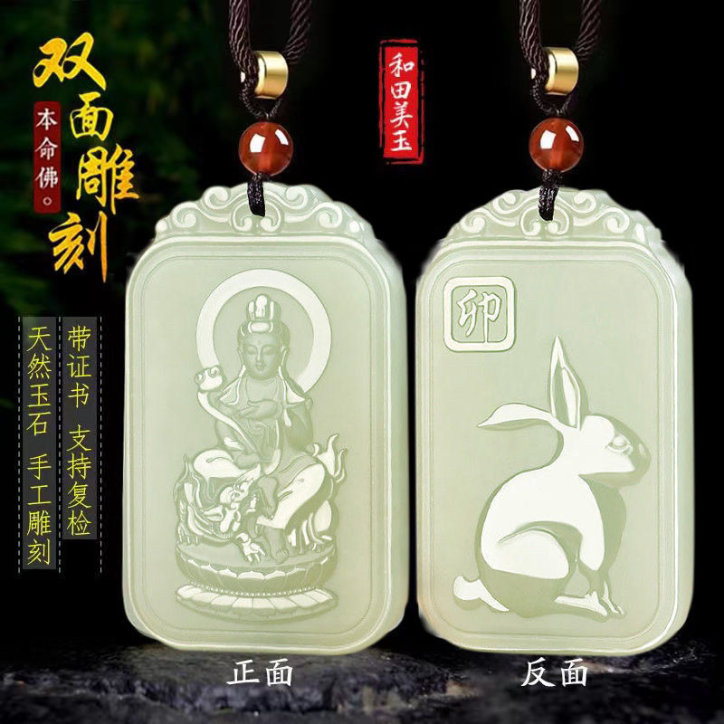 首页 > 未分类 > 天然正品和田玉吊坠十二生肖守护神玉石项链本命佛玉佩男女观音兔