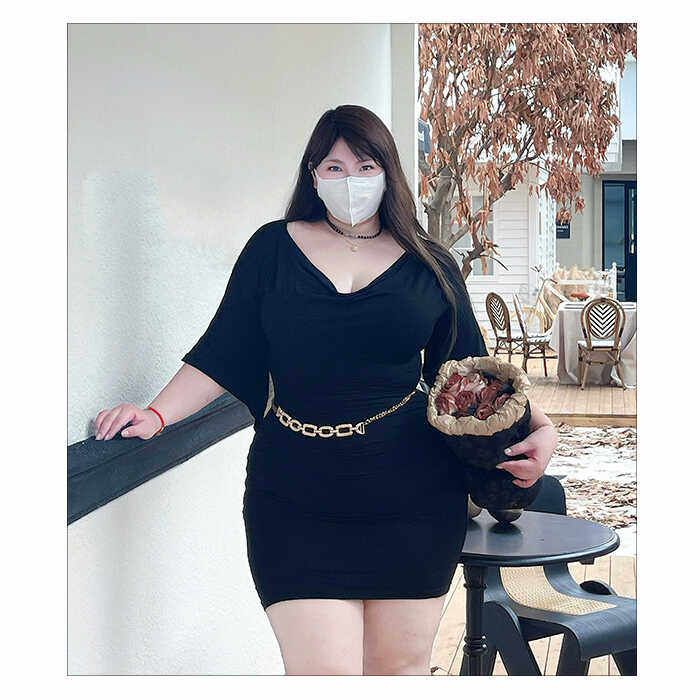 CHEN STUDIO【冷欲姐姐】大码气质荡领垂感包臀连衣裙可一字肩裙