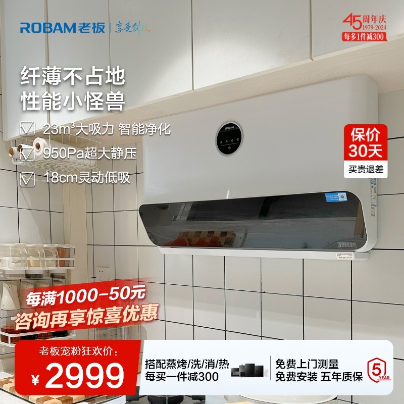 老板22A3S家用白色厨房超薄抽油烟机抽油烟机官方旗舰店