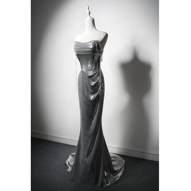 闪银色成人礼毕业年会舞台表演出主持晚宴年会生日新娘结婚敬酒服