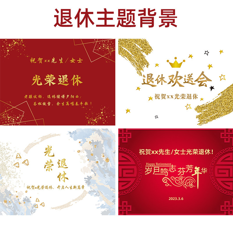 领导老师光荣退休欢送会背景墙布置同事离职退伍仪式装扮海报气球