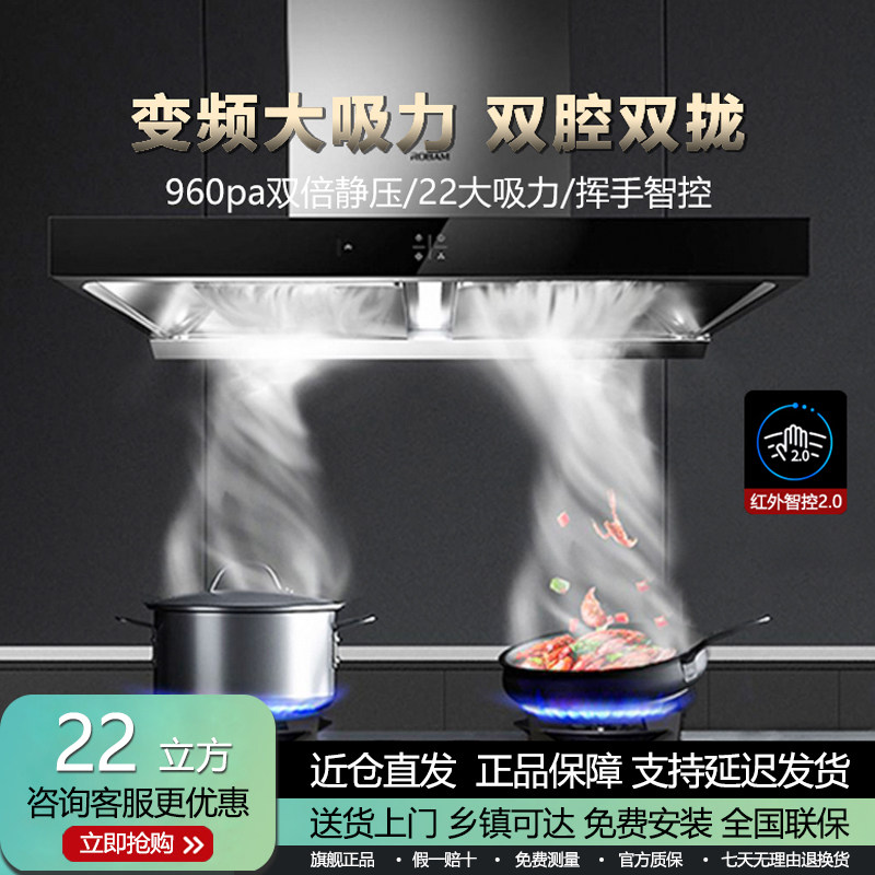 老板60D1S变频欧式顶吸抽烟机燃气灶套装60X2S同款油烟机大吸力