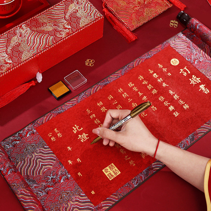 中式婚书订婚书中国风手写婚书卷轴送日子书下聘书高级感订婚用品