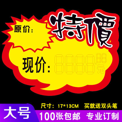 首页 > 未分类 > 超市爆炸贴便利店pop广告纸特惠大号100张商品价格标签水果店特卖促销牌定制惊爆价手描写打折活动贴爆炸贴
