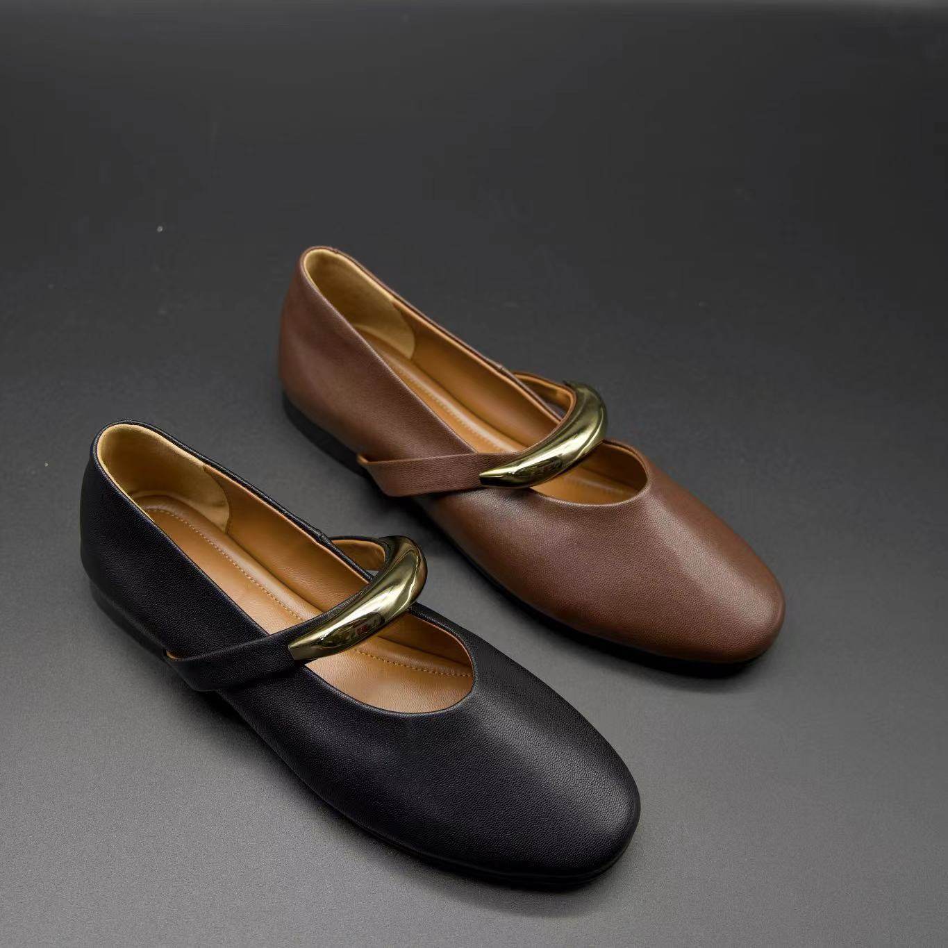 法式复古气质单鞋女金属春秋新款软皮百搭玛丽珍鞋浅口奶奶芭蕾鞋