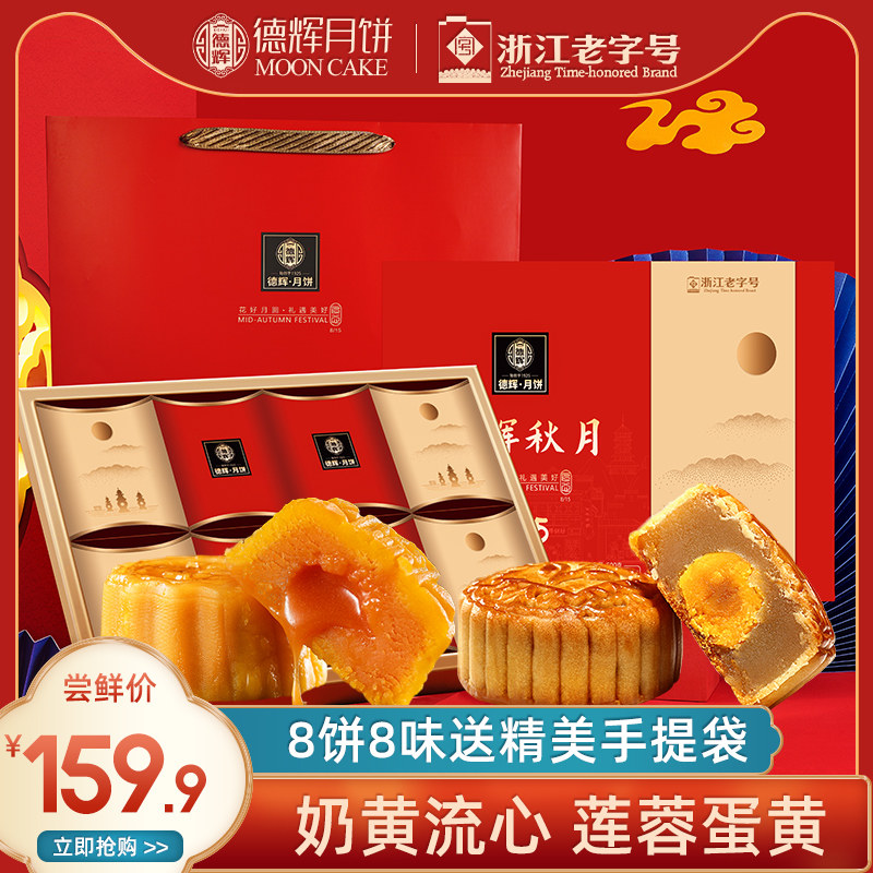 9#德辉秋月中秋节月饼礼盒装广式莲蓉蛋黄奶黄流心糕点心礼品送人