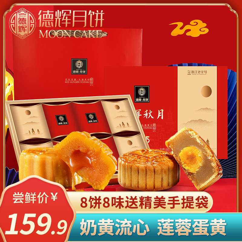 券后价39.9(159.9-120券),德辉月饼礼盒装广式莲蓉蛋黄流心奶黄糕点心中秋送礼