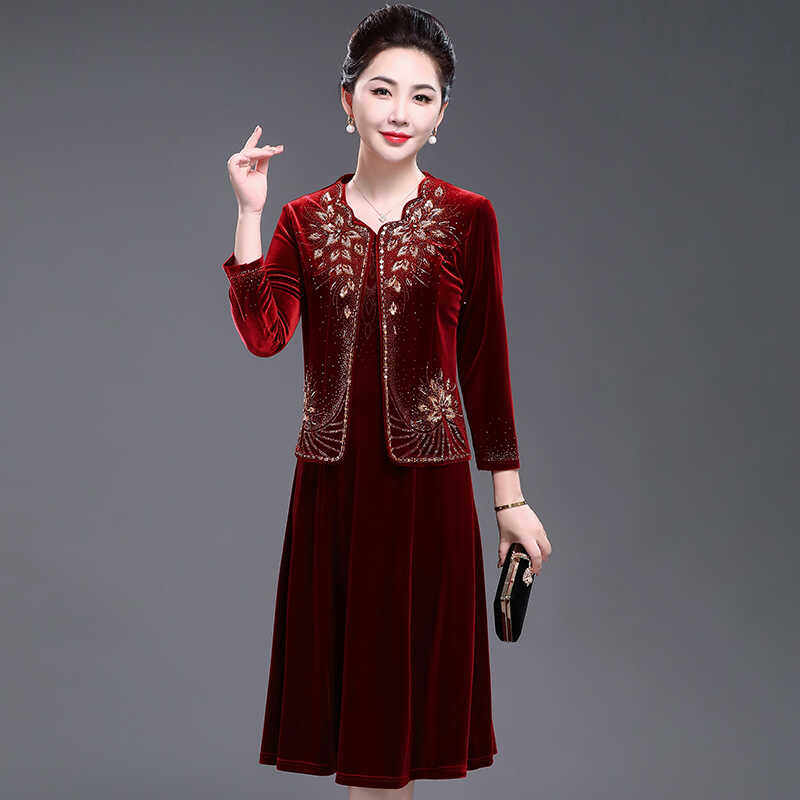 - 奶奶装秋冬季仿水貂绒外套中老年人妈妈冬装加绒加厚毛领刺绣上衣