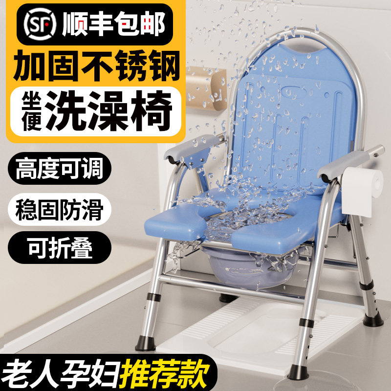 老人坐便器移动马桶残疾人坐便椅可折叠病人孕妇家用坐便凳加固