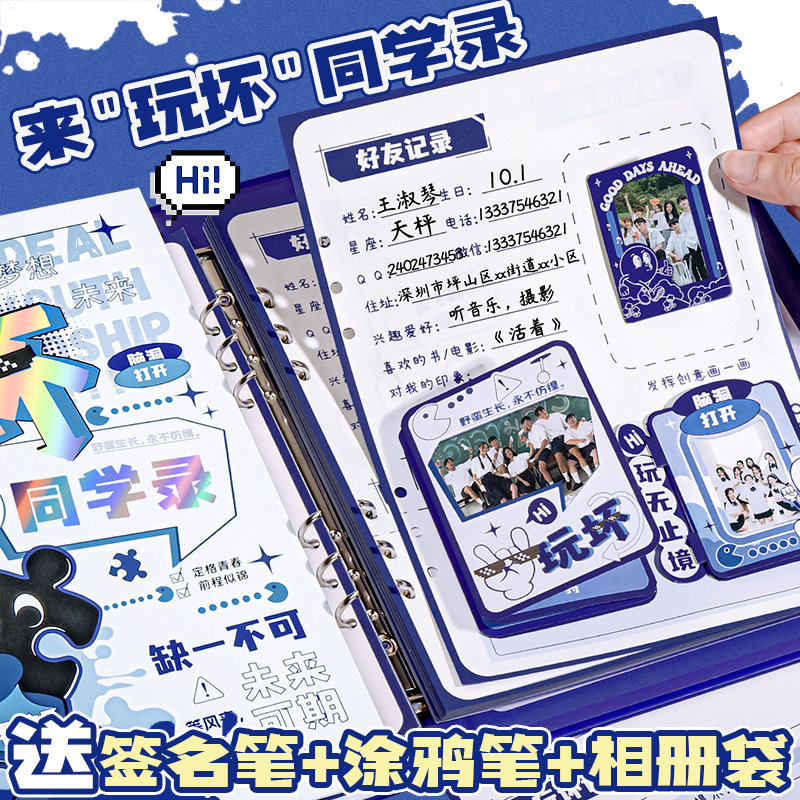 玩坏机关同学录2024新款小学生六年级毕业纪念册ing风小众高颜值活页高级感初中留言通讯录男生女生搞笑炫酷