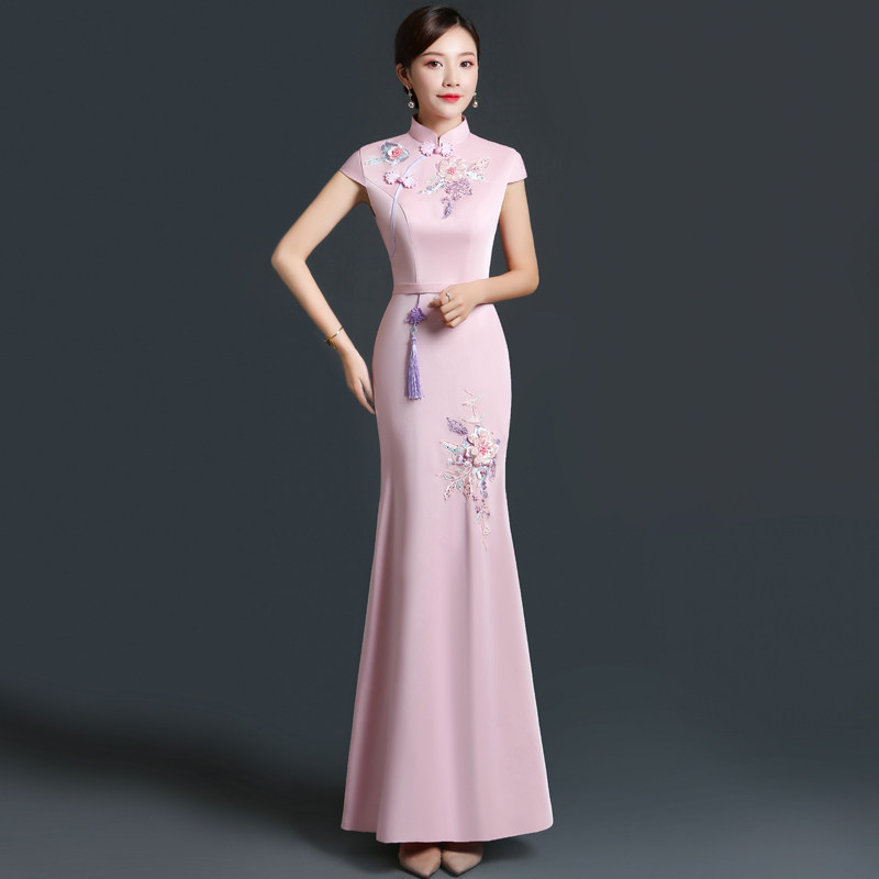 首页 > 未分类 > 粉色鱼尾宴会晚礼服裙女2023新款秋主持人礼服年会演出服中式伴娘