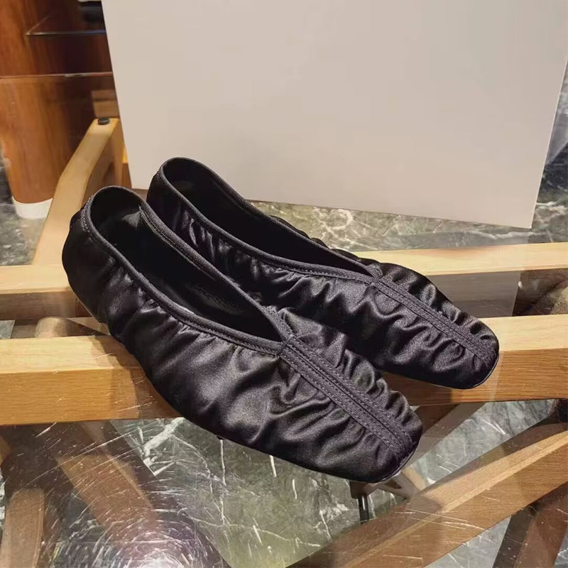 首页 > 未分类 > 2024秋新款真丝褶皱芭蕾舞平底鞋女百搭真皮方头一脚蹬单鞋奶奶鞋