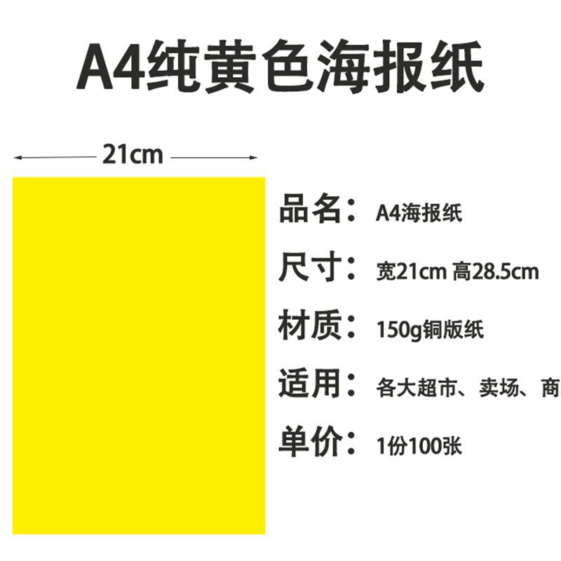 100张超市pop促销广告纸A4黄色小号2128双面超市手机药店手绘海报