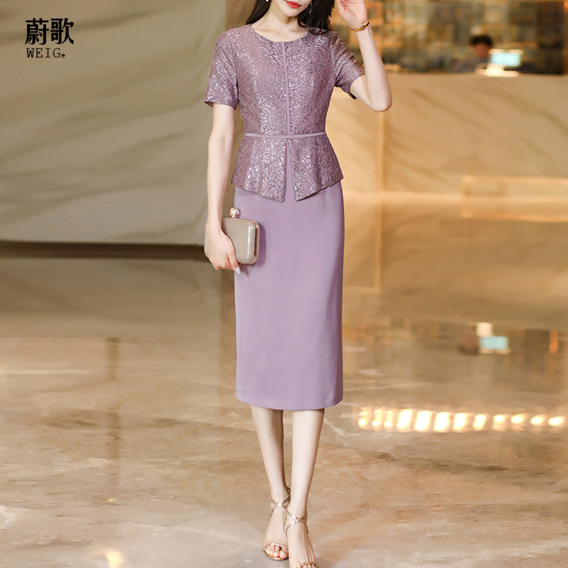 婚宴妈妈礼服紫色高贵喜婆婆连衣裙夏2024新款气质修身显瘦中长裙