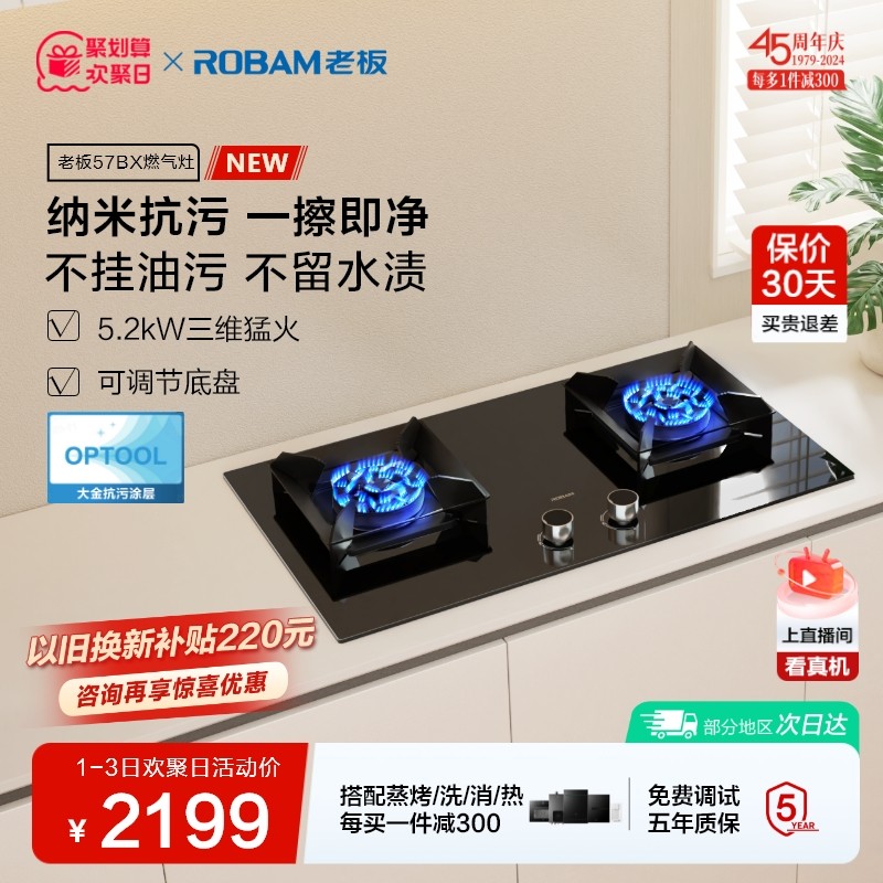 [易清洁新品]老板57BX燃气灶双灶家用天然气炉灶煤气灶台官方旗舰