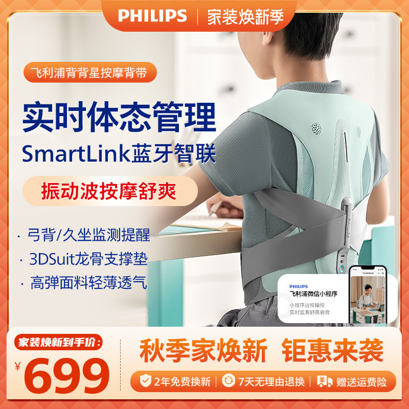 飞利浦背背星驼背矫正器儿童男女成年坐姿背部带按摩仪佳选按摩器