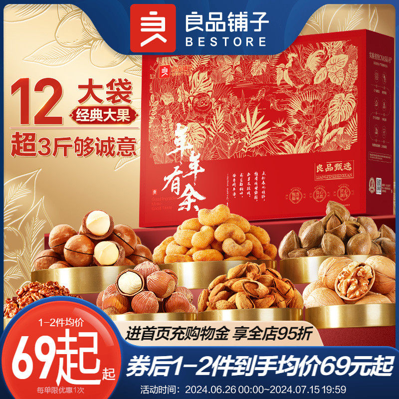 - 比比赞坚果礼盒年货礼盒送礼长辈夏威夷果拜新年过年货零食大礼包