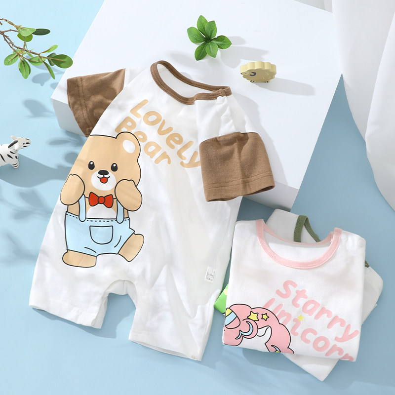 首页 > 未分类 > 小班郎婴儿连体衣夏季纯棉衣服短袖男女宝宝夏装印花可爱外出哈衣