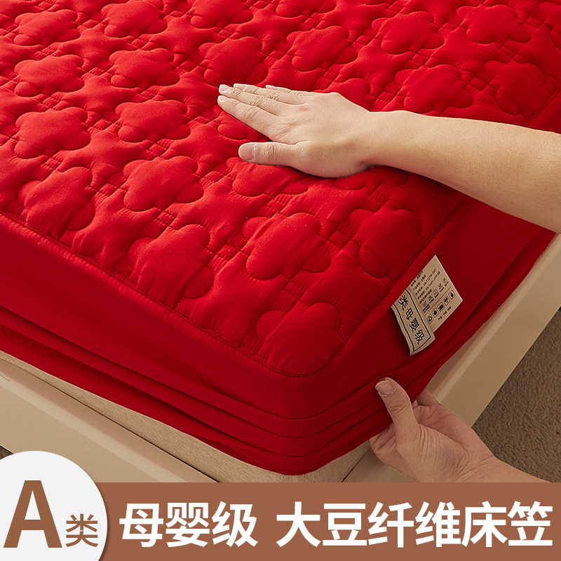 A类春节结婚红色床笠2024年新款夹棉单件秋冬席梦思床垫保护罩套