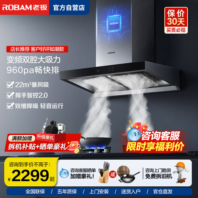 老板变频抽油烟机60X2S家用厨房烟灶吸油烟欧式顶吸大吸力官方