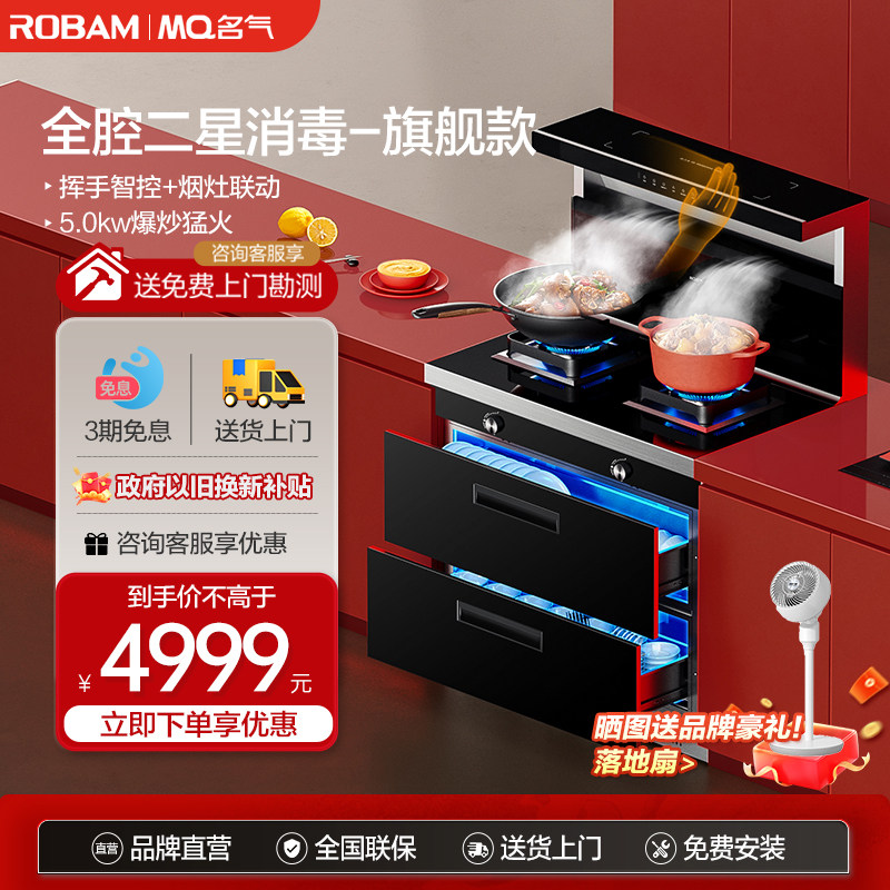 老板名气消毒柜集成灶一体灶家用5.0kW大火力蒸烤箱官方旗舰9A13