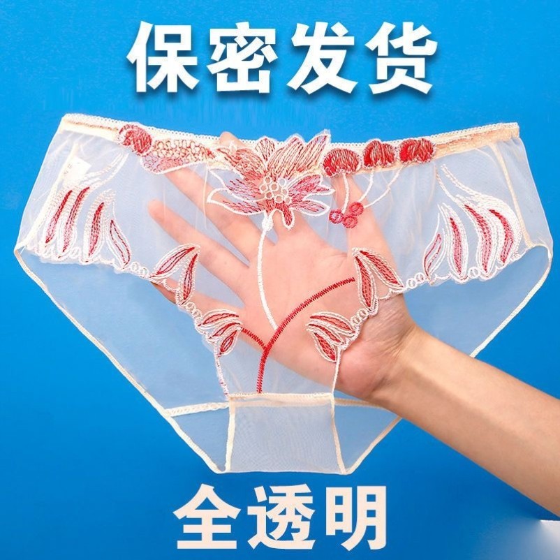 性感内裤诱惑老公新款全透明蕾丝网纱刺绣超薄成人大码女士三角裤
