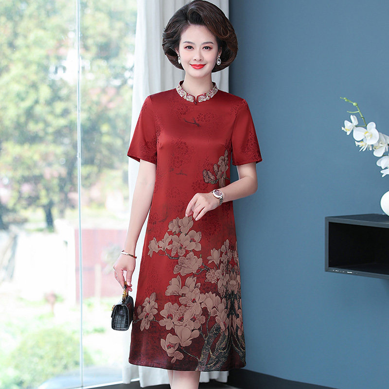 首页 > 未分类 > 喜婆婆婚礼大码女装遮肚真丝连衣裙桑蚕丝中老年妈妈高贵旗袍裙子