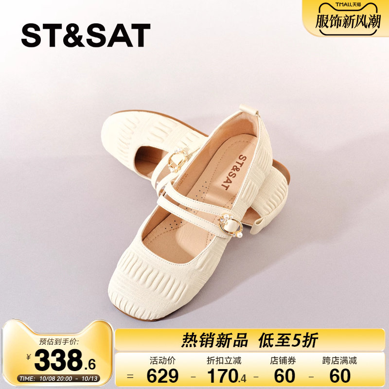 星期六珍珠扣饰软底单鞋2024年春季新品奶奶鞋黑色单鞋SS4111127A