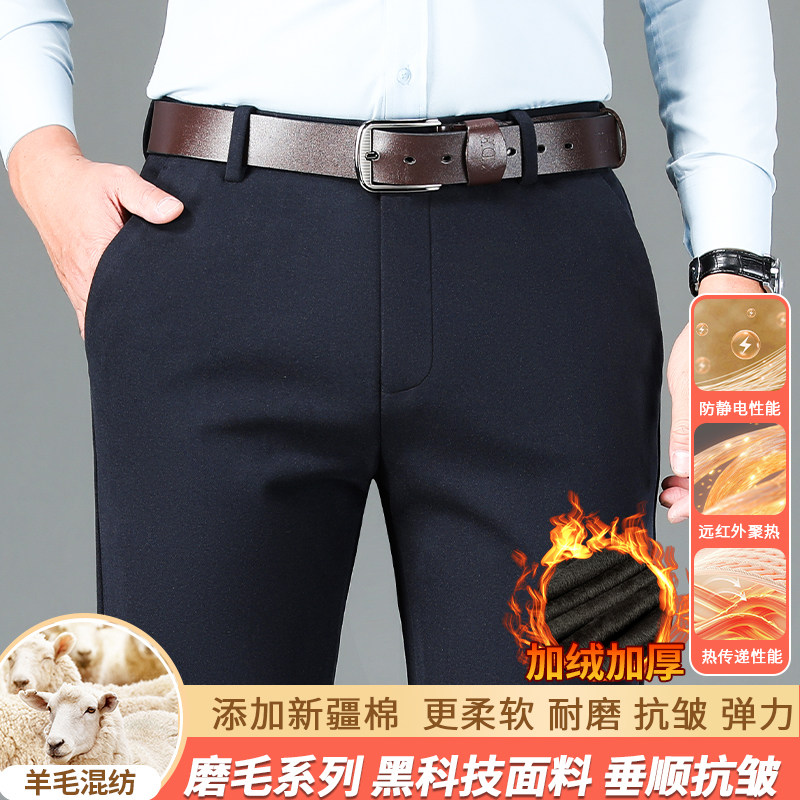 雅鹿男士休闲裤弹力商务西裤宽松直筒长裤子加厚加绒保暖春秋冬季,舒适百搭,好看又时尚!!!超值抢!!