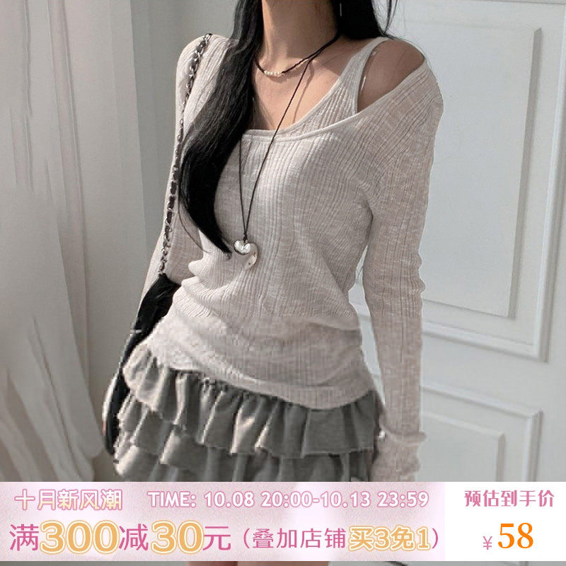 ROCKMORE【淡雅姐姐】简单随性长袖两件套知性风百搭坑条打底上衣