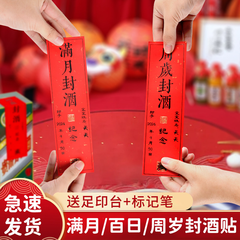 封酒贴纸宝宝周岁生日布置装饰满月百天抓周纪念封条女儿红甜品台