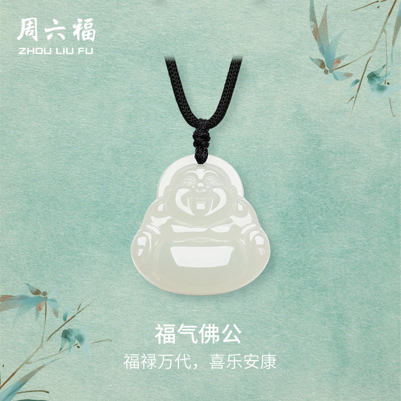 周六福旗舰店和田玉吊坠男女福气佛公玉坠白玉玉石挂件节日礼物