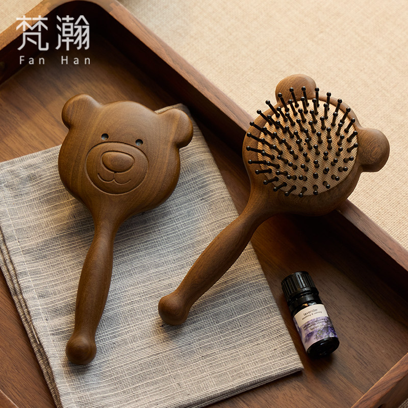 梵瀚 实木气垫梳可爱穴道按摩梳创意礼品卡通木梳便携小熊气囊梳
