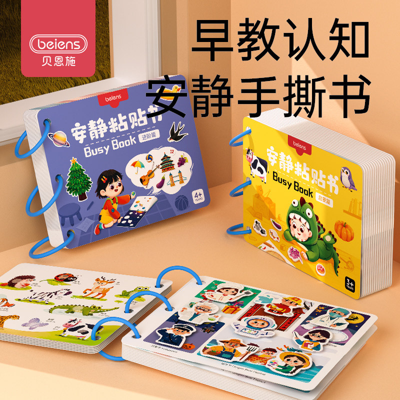 贝恩施安静手撕布书,专注粘贴学认知,多样化主题设计,提问引导互动,亲肤魔术贴,牢固耐撕扯,锻炼手眼协调,促进思维活跃.