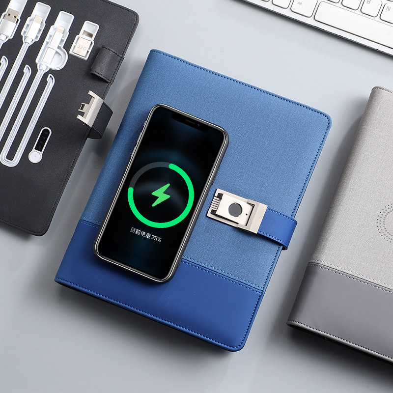 首页 > 未分类 > 无线充电笔记本带U盘充电宝指纹解锁多功能移动电源记事本A5活页夹办公会议记录本商务礼品套装定制可印LOGO