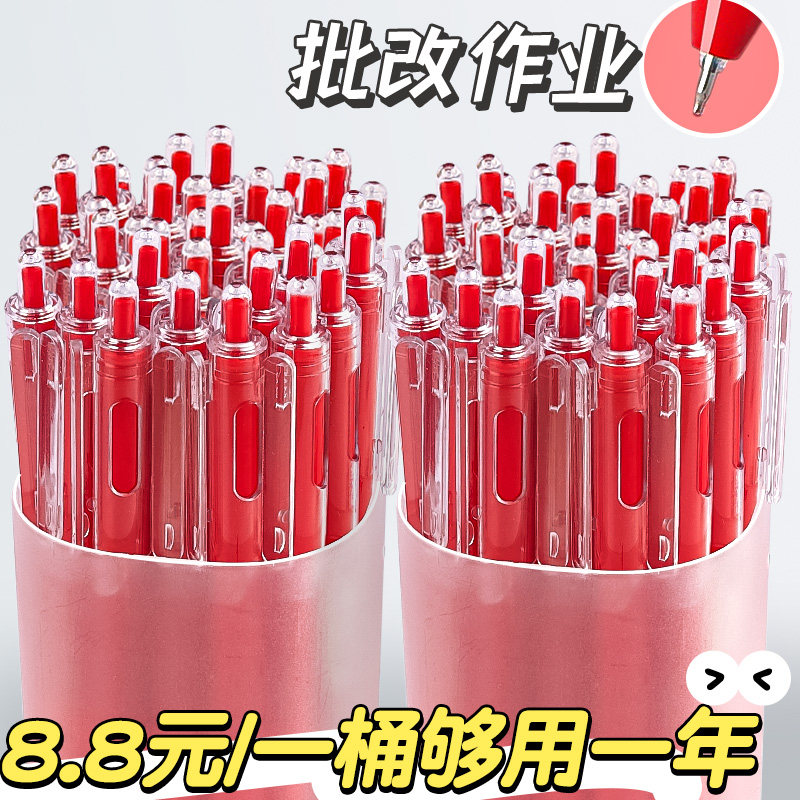 首页 > 未分类 > 红笔学生专用红色中性笔老师专用批改作业水笔按动圆珠笔红笔芯水性笔考试红笔芯签字笔速干按压式文具用品