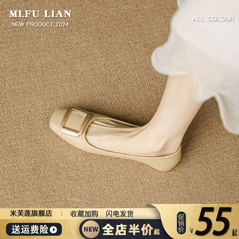 平底单鞋女2024春秋新款方头两穿百搭瓢鞋浅口软底一脚蹬奶奶鞋夏